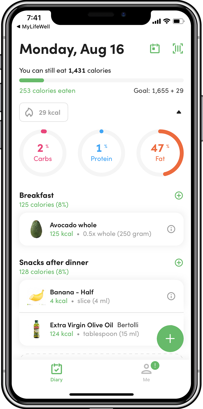 Built-in nutrition tracker, barcode scanner and meal planner.